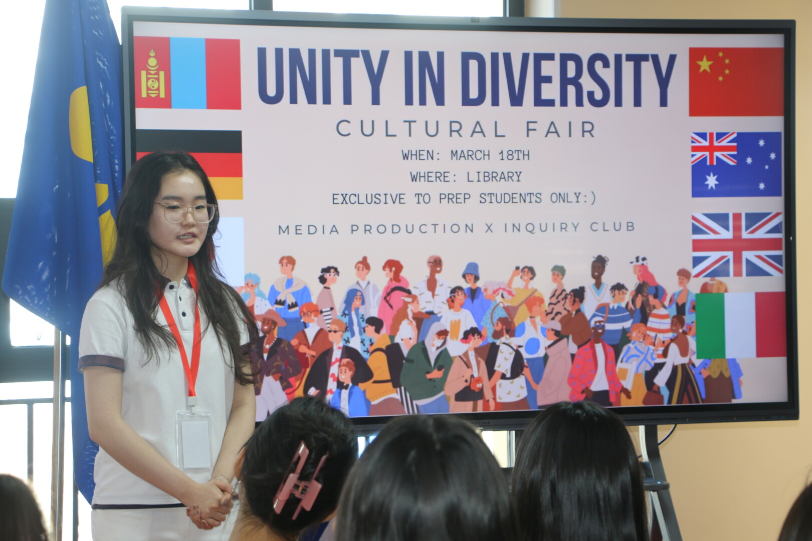 Олонлог Академийн IBDP хөтөлбөрийн CAS Project-ийн хүрээнд “Culture Fair” үйл ажиллагаа амжилттай зохион байгуулагдлаа. Media Production болон Inquiry клубүүдийн хамтран зохион байгуулсан уг өдөрлөгөөр сурагчдад улс орнуудын соёл, уламжлал, их сургуулийн талаарх мэдээллийг хүргэж, соёлын булангаар аялуулан мэдлэгээ тэлэх сонирхолтой боломжийг бүрдүүллээ. “Culture Fair” нь сурагчдын бүтээлч сэтгэлгээ, хамтын ажиллагааг дэмжсэн үр өгөөжтэй арга хэмжээ боллоо.